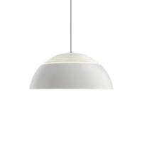AJ Royal is among the Arne Jacobsen designs developed in 1957 for the SAS Royal Hotel in Copenhagen (Radisson Collection). Here it could be found in a copper version above the tables in the snack bar behind the atrium, in the lounge on the 1st floor and in the Panorama Lounge on the 21st floor. The hotel opened in 1960 and with its 22 floors it gave Copenhagen its first real high-rise building heavily inspired by New York skyscrapers. In those days, the lamp was simply called the AJ Pendant. The segmented spherical design from 1957 is regarded as Jacobsen’s first steps back to the basic geometrical shapes that characterize the world-famous Danish architect’s later designs. The AJ Royal formed part of the overall design concept that Jacobsen developed for the hotel, of which a number of designs have achieved iconic status. Jacobsen did not only design the hotel down to the smallest detail for SAS (Scandinavian Airlines), he also designed nearly all the hotel’s original furniture and utility items. The lamps are probably the most well-known globally, including the AJ Lamp from 1957. The AJ Royal was originally produced in three colors: light grey, dark brown and black. Today, the AJ Royal is available in white in its two original sizes. A smaller variant is introduced in 2020 to celebrate the 60th anniversary of the opening of the hotel, just as the series is reintroduced in black. The AJ Royal retains its classic, graphic look as sharply as ever – irrespective of whether it lights up a dining table, is used in an office, or a showroom, where it ensures an even and flawless downward light and generates ambience with its softened upward light.