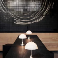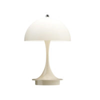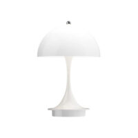 Originally designed in 1971, the Panthella has since become recognised as one of Verner Panton’s most significant designs. The recognisable, soft organic shape of the table lamp is not only beautiful but also functional, with a hemispherical shade that directs light downward onto the trumpet shaped base, which reflects the light in a uniform manner. The Panthella 160 Portable is a petite and portable version of the classic Verner Panton design, with a shade that is just 160 mm in diameter. It is perfect for use around the home, as well as other locations.