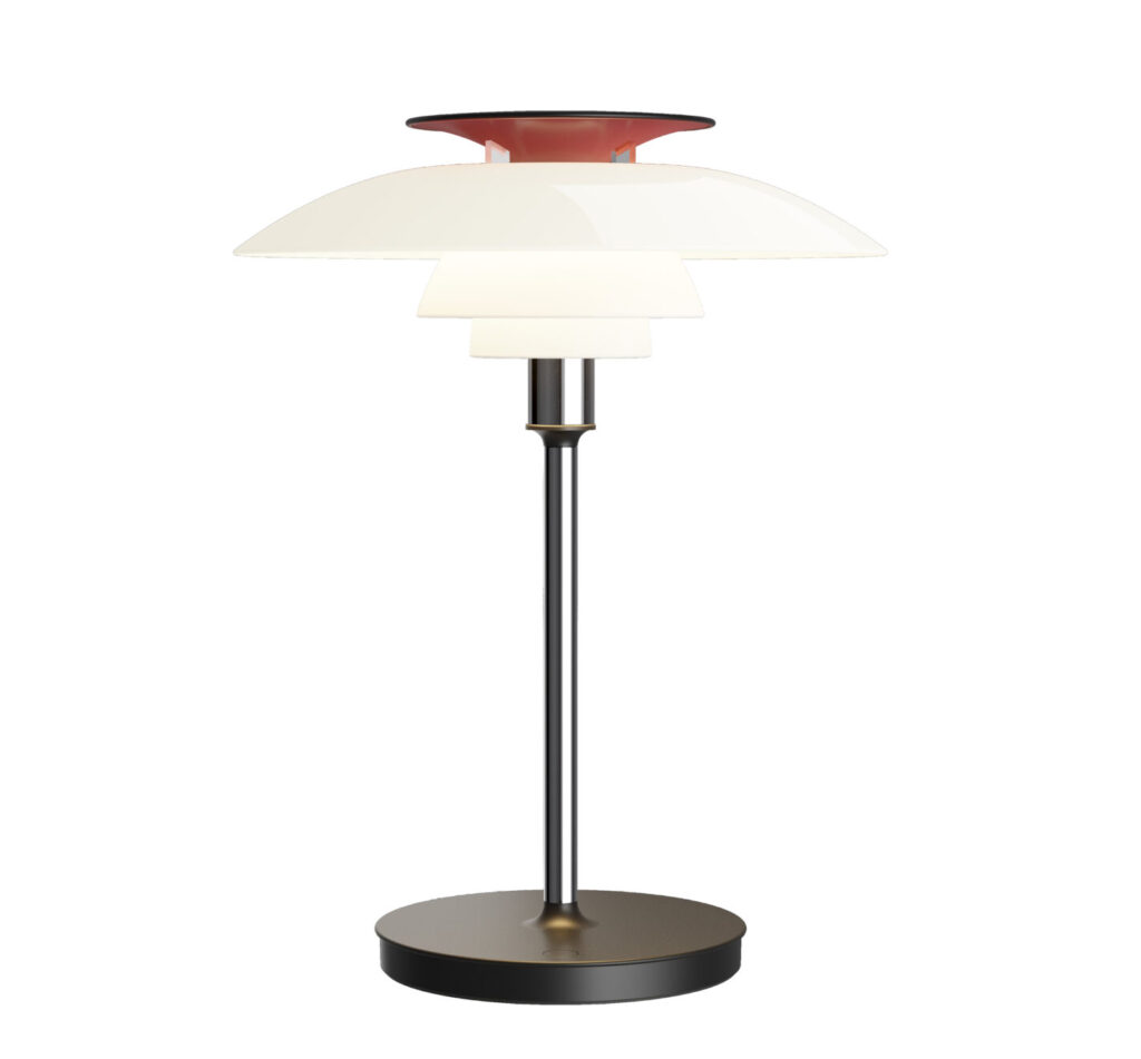 The PH 80 was originally a table and floor lamp designed in tribute to Poul Henningsen, one of Denmark’s most renowned designers, especially celebrated for his work with lighting. The PH 80 was created in 1974, after Henningsen’s death, as a homage to him on what would have been his 80th birthday.The original PH 80 is part of Henningsen’s famous “PH series” and follows his principles of creating glare-free lighting through a multi-shade design. The PH 80 Portable Lamp is both functional and aesthetic, providing comfortable, indirect lighting that is warm and diffuse, making it suitable for both private homes and professional environments.