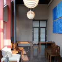 Poul Henningsen designed the three-shade system during 1925/1926. The first lights using the system were designed for an exhibition in Paris. His work with Louis Poulsen continued until his death in 1967. Throughout his life, PH sought to create glare-free lighting; aiming to direct light where it was most needed, and creating soft shadows while using incandescent bulbs as a light source. PH Louvre was designed for the Adventist Church in Skodsborg, Denmark, in 1957. The globe-shaped fixture is made up of 13 shades mounted on four supports. It is a simplification of the Spiral designed by Henningsen in 1942.