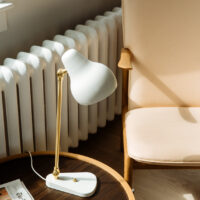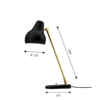 The VL38 table lamp was originally designed in the late 1930s by Vilhelm Lauritzen in partnership with Louis Poulsen for the construction of the Radiohuset building (the Danish broadcasting house) in Copenhagen (today the Royal Danish Academy of Music). Vilhelm Lauritzen’s lamp design, VL38 and the pendant VL45 both designed for Radiohuset, started to appear in Louis Poulsen catalogs after World War 2 in the middle of the 1940s. VL38 in white/brass was relaunched in fall 2016. To accommodate contemporary advances in light technology and energy efficiency the fixtures have been fitted with LED. The black edition of the VL38 introduced fall 2017 has a stronger outline than the original white version, though maintaining the loved retro look and the soft, curvy expression of the original design.