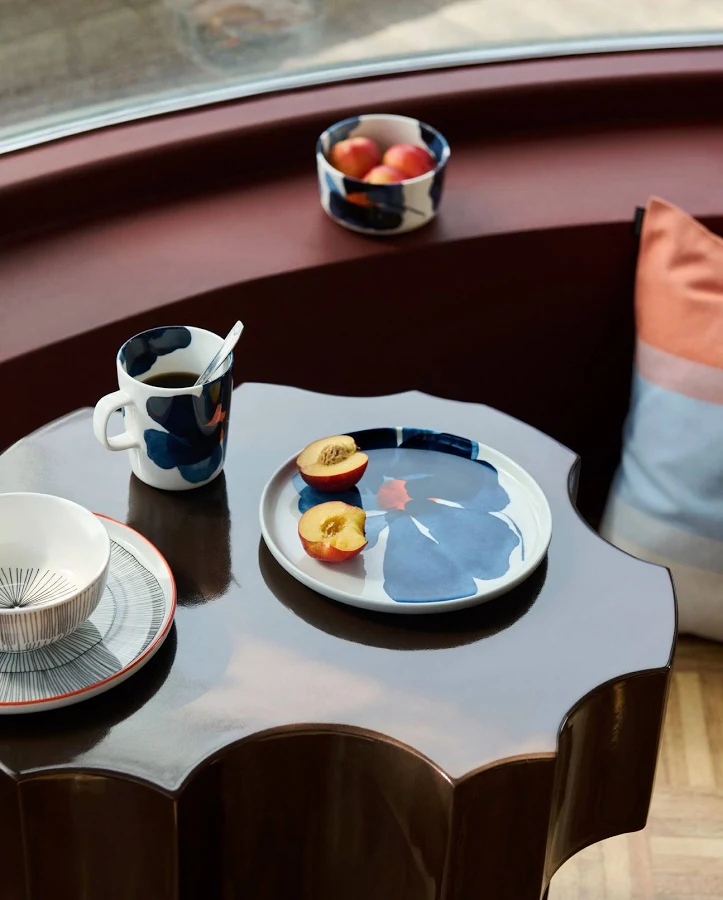 The Oiva form is designed by Sami Ruotsalainen, with the Valssi (Waltz) floral print by Aino-Maija Metsola. Inspired by warm summer evenings, the flowing blooms suggest gentle movement and rhythm.