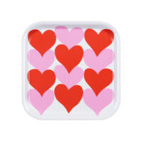 The Marimekko Tray is made of laminated birch plywood. It features Maija Isola’s cheerful Sydamet (hearts) pattern in pink, red and white. We recommend washing the tray by hand.