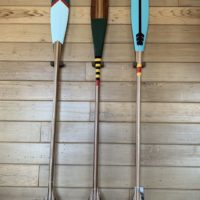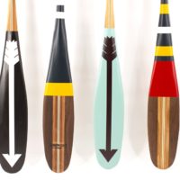 The stunning line of hand painted paddles are very functional art. Perfect for taking your canoe out for a spin and the perfect wall decor for the modern cabin. We love these handcrafted pieces so much they are displayed throughout our showroom. They look amazing in kids rooms or nearly any space. The solid wood paddles are crafted of western red cedar, ash and black walnut, the contrasting woods making for a beautiful look even before the iconic painted decorations.