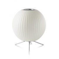 This classic lamp is part of the Bubble Lamp Collection by George Nelson, which was originally designed in 1952. This small, round light creates a warm, glowing light. It is ideal for bedrooms, living rooms and any corner of the house that needs to be brought to life. The tripod stand is constructed of durable brushed nickel-plated steel. A white shade creates a soft, even glowing light. Each lamp has an on/off switch on the cord. The 90-inch long cord has a plug on the end of it.