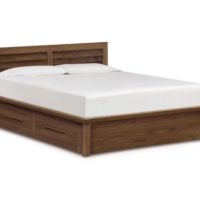 Moduluxe is a highly configurable bedroom and storage system that can adapt to most spaces and needs. Moduluxe Beds, configured for mattress only, may be ordered in multiple headboard designs and heights with either under-bed storage or with a deeply in-set plinth base for a dramatic floating motif. All beds are available with attachable nightstands with either a flat shelf or single drawer storage.