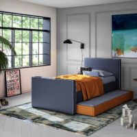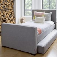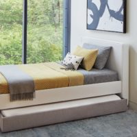 With soft corners and plenty of colors to choose from, the Monte Dorma Bed is ideal for a fun child’s room! Now available in full size as well as twin size! The modern style allows your child to grow into this modern bed, which accommodates any standard twin or full mattress. Easy-to-clean microfiber fabric and durable leathers are available. Wood legs are stained with a dark finish. Also choose to have matching or contrasting piping! This bed requires no box spring. Wood slats create a strong and stable foundation for a mattress. Easy to assemble – no tools required!