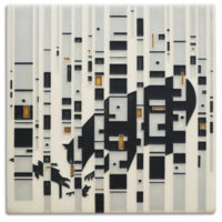 Do you recognize the large black shape among the birch trees? The ceramic tile, Bear In The Birches, features a large black bear in a birch forest. The tile’s design was based on the artwork of Charley Harper.