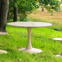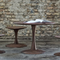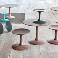These Nanna Ditzel Trissen Tables, sometimes called toadstool tables, come in a variety of colors and sizes. Their elegant, spool-like shape brings a grace and a lightness to any room. Some of the size options are higher than the standard American coffee table. This makes for a versatile little table for playing cards or for pairing with Nanna’s Trissen stools.
