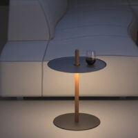 At the intersection of functional lighting and furniture, you find Nivél. As an adjustable height side table, Nivél provides a totem to gather around. Portable and rechargeable, Nivél enables users to bring light to areas not serviced by power outlets. Sturdy enough to rest a few beverages atop while nimble enough to be raised or lowered at a moment’s notice. Its cleverly designed light module rests securely fastened around a solid wood post secured to a powder-coated steel base for added footing. A soft ambient downward facing light panel completes the package, bringing an unobtrusive light source to your home or office space. The post is offered in both solid Oak and Walnut and can be paired with a powder-coated tray in White, Terracotta, or Black