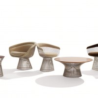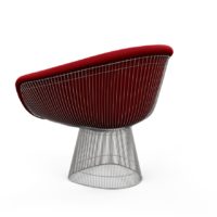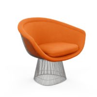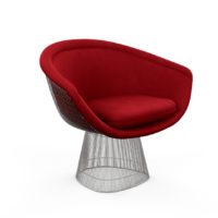 In the 1960s, Warren Platner transformed steel wire into a sculptural furniture collection, creating a design icon of the modern era. The frame features wire rods that are perfectly bent to create the structure of a beautifully sculptured chair. The lounge chair has a fully upholstered shell, providing comfort while exposing the wire frame from the back side of the chair. A seat cushion and back cushion are built in to create a lovely lounging experience. A clear plastic extrusion ring creates a smooth bottom surface for the base.