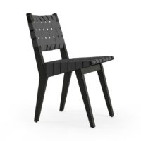 The Risom Side Chair by Knoll was designed by Jens Risom in 1943. This classic design remains a striking and modern piece in the 21st Century. Pair with the Risom Dining Table to create a striking set. The comfortable Risom side chair is made from a lacquered solid maple or walnut hardwood frame. Choose from a clear finish or a ebonized finish on solid maple hardwood. This sturdy chair uses mortise and tenon construction. Choose from a variety of colors with either 100% cotton webbing or a nylon/cotton blend webbing. This model has a webbed back and seat. Also available with wood back and webbed seat.