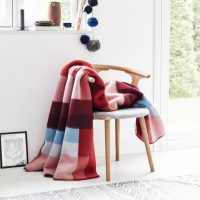 The Mikkel Blanket from Roros Tweed explores unexpected color combinations. Inspiration for the Mikkel design comes from a unique juxtaposition of the Bauhaus design movement and Norwegian traditional weaving. Mikkel is two-sided, which different color patterns on each side. This thick, large blanket is made from 100% Norwegian wool and is completely produced in Norway. Natural wool fibers will keep you warm and cozy throughout the cold winter season.