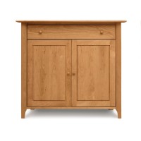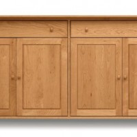 Simple with a subtle Shaker influence, the Sarah Buffet by Copeland blends with traditional and modern furnishings. Made of solid Cherry hardwood, the Sarah features a beautiful wood grain with the option of several stain finishes. The Sarah 2 Drawer/4 Door Buffet provides a huge amount of storage space to store all of your china, serving pieces, linens and more. Drawers provide storage for silverware while adjustable shelving below can store large serving pieces or china. For smaller spaces, check out the Sarah 1 Drawer/2 Door Buffet. The Sarah Dining Series offers many coordinating dining table and chair options. Many hardware options available. Please call to inquire about the non-standard pull options.