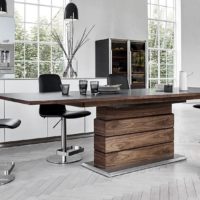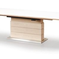 Our new height adjustable dining table from Skovby, the SM30 Extension Table, was designed for families in need of a multi-purpose gathering spot at the heart of the home – the kitchen. This unique, adaptable table can be easily adjusted from dining to bar height in seconds! Press an up/down button under the tabletop and stop at whatever height is needed. Use the SM30 as a play and homework table for the kids, a veggie prep station for weeknight dinners, a makeshift desk for busy days, and a gathering spot for family meal. Pair with the SM50 Height Adjustable Dining Chair for the best experience.