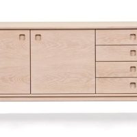 The construction of the sideboard is simple but consists of many craftsman details. The front is asymmetric with drawers at one side. The integrated door and drawer handles, as well as the rounded corners on top and frame, give the sideboard a harmonious and pure expression.