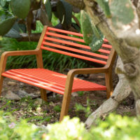A new twist on the English bench. Fermob’s reworked outdoor bench is naturally more fluid in appearance, with armrests integrated into the base. Building on its expertise in materials, the brand selected a stunning combination of teak (for the frame) and metal (for the seat.) It is a stunning mixed material bench that can weather the elements. Somerset is available in all 24 shades of the Fermob color chart, yet another modern touch.