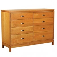 This beautiful eight drawer dresser is part of the Spectra Franklin Series made in Pennsylvania. Maximize storage space with being able to organize small items in eight drawers. Spectra uses a combination of solid and veneered cherry or walnut to create these high quality, clean lined pieces. Coordinating bed frames, dressers and office furniture are available from this line. Choose from a large variety of stained cherry finishes and several different types of knobs or pulls.