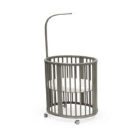 | The Stokke® Sleepi™ Mini is the ideal first bed for your newborn. Creating a nest-like environment, it helps baby feel snug and secure. Soft oval design cocoons your baby offering comfort and familiarity for restful sleep and the sweetest of dreams. The drape rod and canopy make it a truly elegant addition to any nursery. Lockable swivel wheels can be used to rock your baby gently to sleep and makes your crib easy to move from room to room. At only 64 cm / 25,2 in inches wide, it’s amazingly space efficient, making it ideal for petit nurseries. 4 mattress levels offering safety and flexibility for each age and stage of development. The Stokke® Sleepi™ concept has been developed with sound sleep and safety in mind. It includes new firm and breathable Sleepi™ mattress which exceed the highest safety standards. For 0-6 months; with conversion kit up until 5 years. Made from durable FSC®-certified beech wood from self-regenerating forests. Mattress core made with Sorona® Bicomponent Stretch fibers. All textiles are Oeko-Tex® Standard 100, class 1 approved and certified free from hazardous substances.