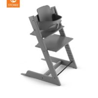 Designed to meet the needs of your child from 6 months to 3 years, the Tripp Trapp® High Chair includes a Tripp Trapp® Chair, Baby Set with 5-point harness, and extender glides. The Baby Set is easily detachable and cleanable.