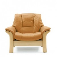 The Stressless Buckingham is available in a more compact version, the Stressless Windsor. The Windsor has a smaller seat, which creates a narrower chair. The Buckingham is available in a variety of fabric and leather upholstery options. Also choose from seven beautiful wood finishes for the legs. The Buckingham is also available as a loveseat and sofa. Pair the Buckingham with a coordinating Stressless Kensington, Mayfair or Chelsea recliner and ottoman. Made in Norway.
