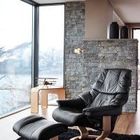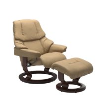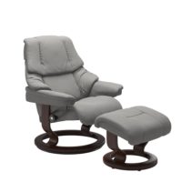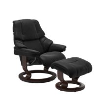 The Stressless Reno Recliner features an amazing comfort created by extra soft padding. The Reno sits like a dream and offers the legendary Stressless support in three sizes: Small, Medium and Large. Stressless chairs are available in a large variety of leathers and fabrics to suit your lifestyle and taste. The wood base finish is available in several different stain options. Quick ship leather options are shown. For information on all custom leather and fabric options, please contact us.