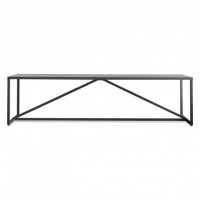 Lacquer: Lacquer on engineered wood substrate with glossy polyurethane finish, powder-coated steel legs.