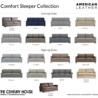 The Sulley has a high leg style. Comfort Sleepers with a low leg style have a more plush sit and have 5-inch thick mattresses. Styles with high legs have a slightly firmer sit and 4-inch thick mattresses.