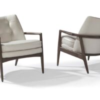 Designed by Milo Baughman in 1965, our Draper lounge chair is a midcentury modern classic. Featuring an elegant, exposed solid walnut wood frame, button tufting, and sumptuous tailored upholstery, the Draper chair oozes classic midcentury modern style yet cradles in gentle comfort. A steam-bent plywood interior frame helps form the graceful and ergonomically curved back of this classic lounge chair. Select any of our in-house curated fabrics or leathers for upholstery. Walnut frame available in natural walnut, black walnut or grey walnut finish.