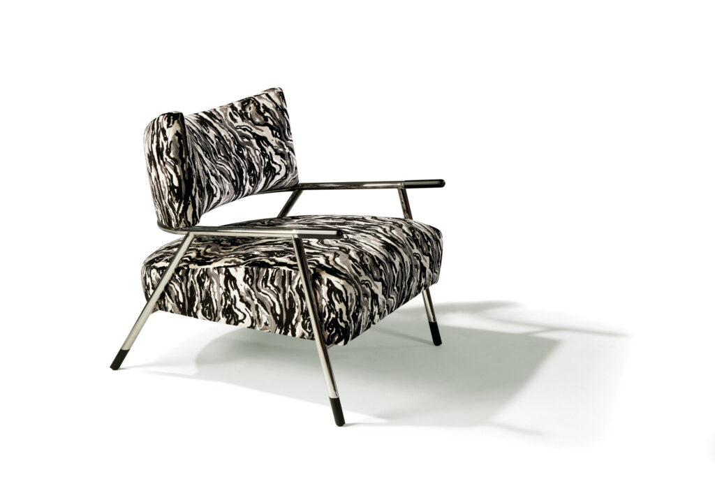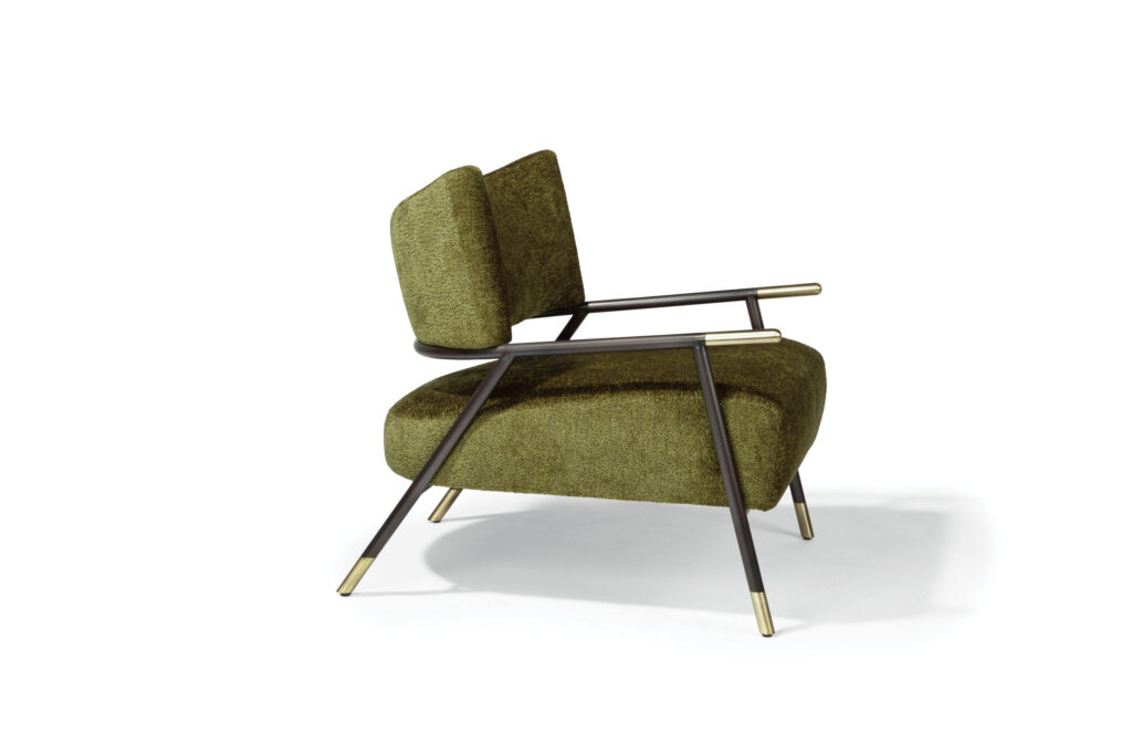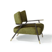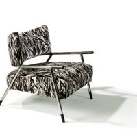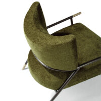 Kai is a cutting-edge, two-toned metal and upholstery lounge chair designed by American furniture designer Stanley Jay Friedman. With a contoured backrest, created by some of the industry’s newest digital technology, the Kai chair is as remarkable for its revolutionary construction as it is for its progressive yet classically modern styling. Kai’s crescent-shaped backrest and ample upholstered seat are suspended by a unique hand-finished, two-toned bronzed steel frame. Choose from any of our in-house curated fabrics or leathers or provide COM for upholstery.