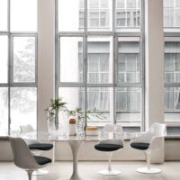 The iconic Tulip Chairs were designed by the well known designer Eero Saarinen. These tulip chairs have been popping up everywhere since 1957. The Tulip chairs belong to a line of furniture that includes the coordinating Tulip dining and side tables. Choose from a huge variety of fabric options for the seat cushion. This chair is available with or without the swivel feature.