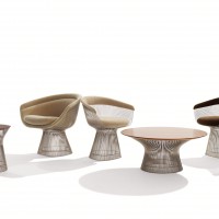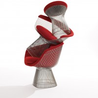 In the 1960s, Warren Platner transformed steel wire into a sculptural furniture collection, creating a design icon of the modern era. The frame features wire rods that are perfectly bent to create the structure of a beautifully sculptured ottoman. A soft cushion provides a comfortable seat. A clear plastic extrusion ring creates a smooth bottom surface for the base.