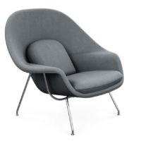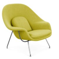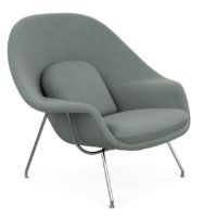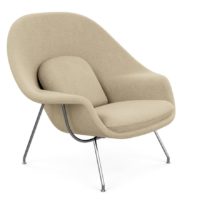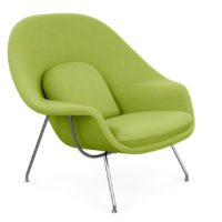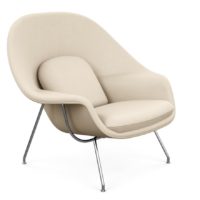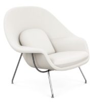 The iconic womb chair, designed by Eero Saarinen in 1948, has been featured in beautiful homes, advertisements and movies for over 60 years. Its smooth lines and soft curves surround the body when sitting in the chair, which creates the womb-like nature of the design.